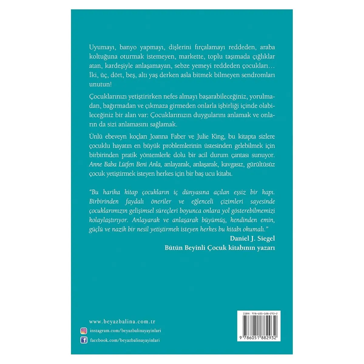 Uyumayı, banyo yapmayı, diş fırçalamayı reddeden; markette ya da toplu taşımada ağlayan, bağıran; kardeşiyle anlaşamayan; sebze yemeyen çocuklarla geçen günlerin “asla bitmeyen” gibi görünen döngüsüne odaklanıyor. Kitap, çocukların duygularını anlamayı ve onların da seni anlamasını sağlamayı merkeze alarak, günlük ebeveynlik sorunlarına pratik yöntemler sunuyor; iş birliğini artırmayı ve gürültüsüz bir iletişim alanı kurmayı hedefliyor.